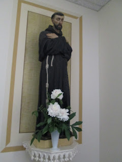 Across from there is a visiting room with a statue of Mary, made out of wood by Sister Victoria, one of our Sisters.
